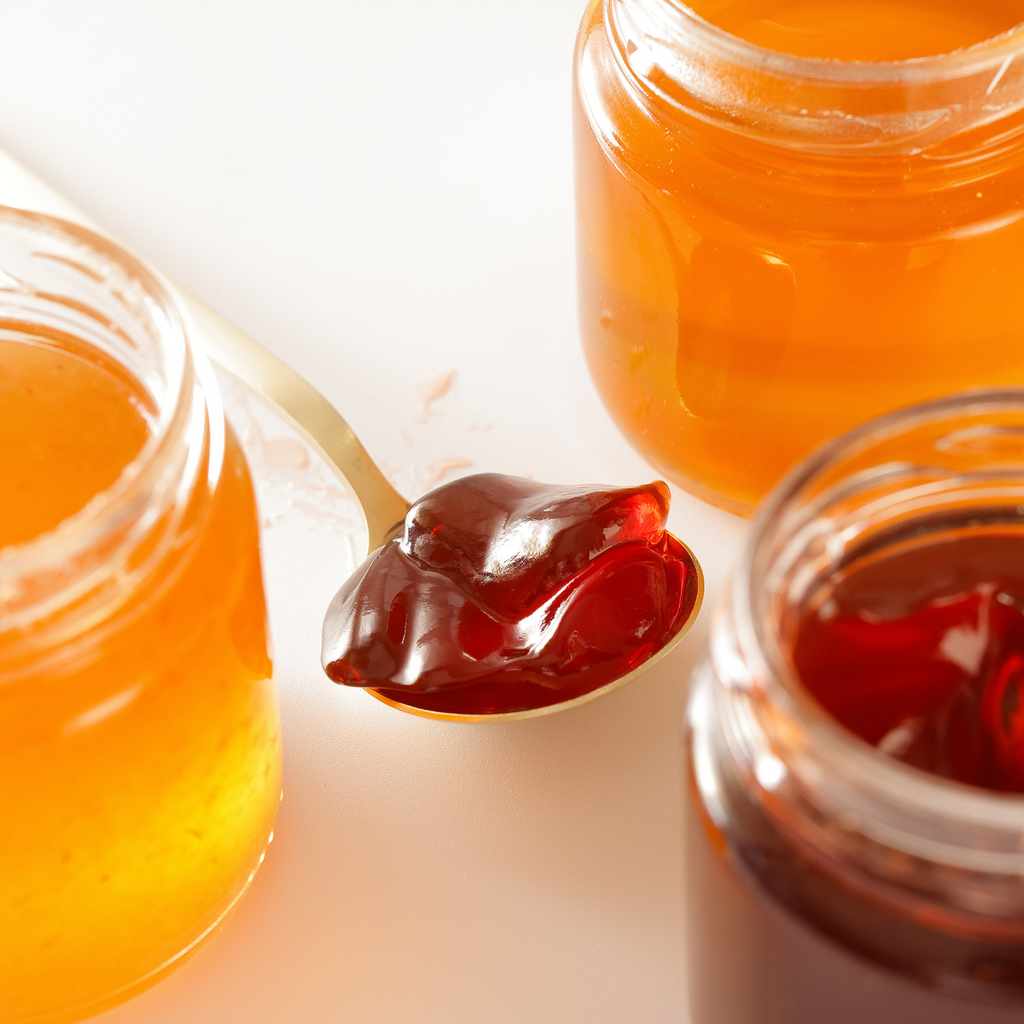 L’alchimia è una scienza antica per cui, tramite processi naturali, è possibile variare lo stato delle sostanze. Prendiamo lo zucchero, unito ad altri ingredienti della terra che, una volta messi in cottura con l’acqua, tramite l’ausilio di un addensante naturalmente puro, come l’Agar Agar si trasformano in GELATINE.